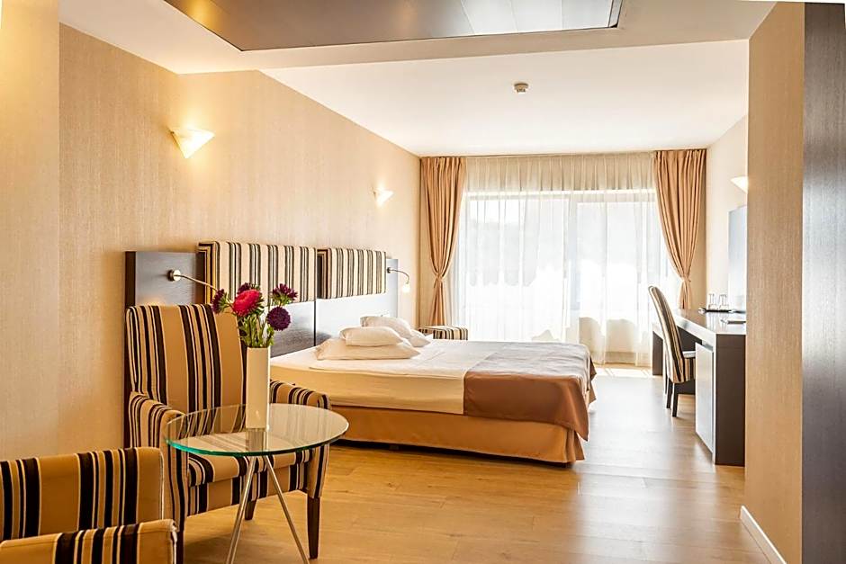 This suite offers views of the Parliament Palace and features modern furnishings in a spacious room.